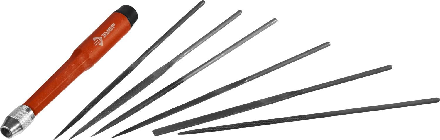 Мастер набор надфилей 6 шт 140 мм, в чехле, цанговая ручка ЗУБР 16053-H6